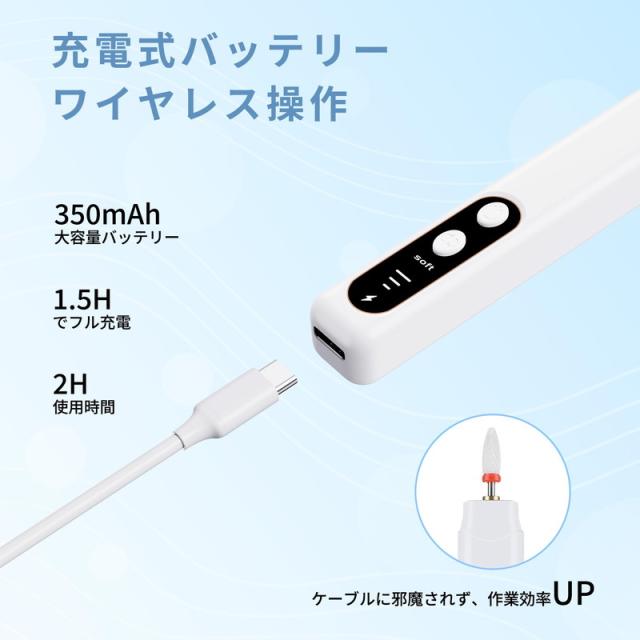 【Type-C充電・コードレス】type-cケーブルで充電できるので、2時間の充電で4時間使えます、LCDディスプレイはシフト位置の変化と低電力量の警告を表示する。稼働状態やバッテリー状態が一目瞭然!無線操作でネイル作業がスムーズに行えます。