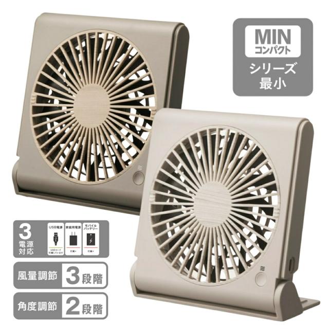 USB電源、家庭用電源、モバイルバッテリーからの給電に対応しており、パソコン作業などのお供に最適なデスクファンです。