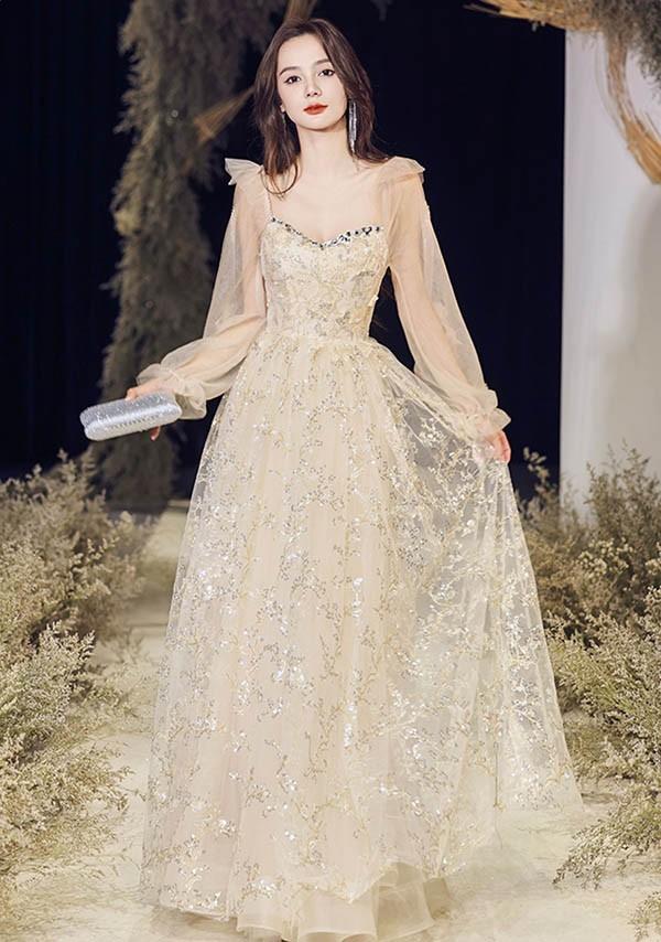 ドレス 大人 ピアノ 発表会 ロングドレス 小さいサイズ キラキラ 袖付き 長袖 演奏会 結婚式 母親 演奏会用ドレス ロング 披露宴 レディース 演奏会ドレス ピアノ発表会 韓国 イブニングドレス パーティードレス ワンピース 二次会 花嫁 dg259n1n1l9