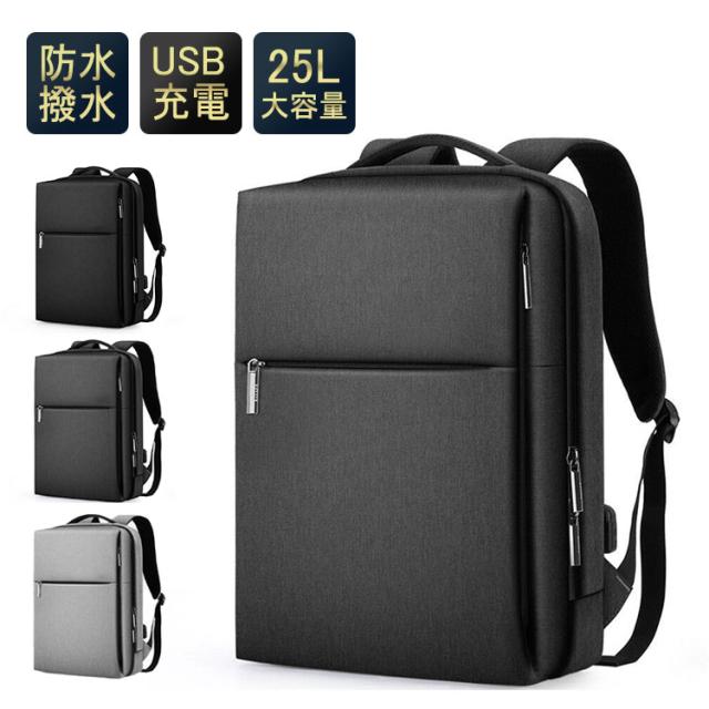リュックサック ビジネス メンズ USB 大容量 25L おしゃれ 防水 撥水 フレーム入り A3 A4 サイズ ノート PC 通勤 通学 バイク 収納 バックパック ブラック グレー かっこいい 出張 旅行 登山 防災 カジュアル レディース 中学生 高校生 大学生 社会人 仕事
