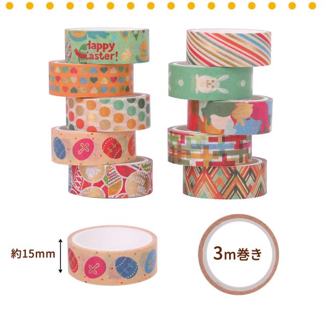 マスキングテープ 10巻セット マステ ハッピーイースター 15mm×3m イースターバニー イースターエッグ うさぎ 卵ドット ハート 可愛い かわいい 手帳 手紙 和紙 ラッピング 装飾 デコ 写真 プレゼント diy ハンドメイド デザイン カード 送料無料 yp