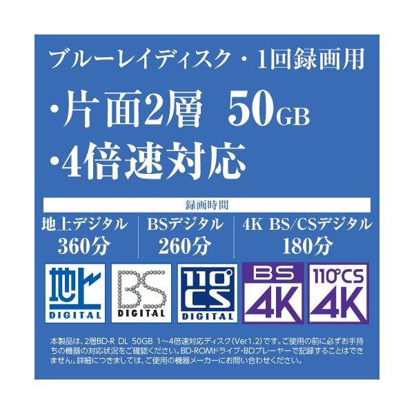 RiTEK RiDATA 録画用 BD-R DL 50GB 20枚入り BR260EPW4X.20SP 片面2層 1-4倍速対応 追記型 ブルーレイディスク インクジェット プリンター対応 おすすめ テレビ録画 テレビ 保存 長時間 録画 アールアイジャパン