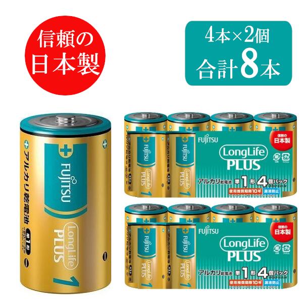 【日本製】富士通 単一形 アルカリ乾電池 電池 LR20LP(4S) 8本セット 単1 単1形 単一 まとめ買い 乾電池 でんち デンチ 大量 時計 リモコン 懐中電灯 おもちゃ 交換用 備蓄 災害 長持ち FUJITSU FDK 単1電池 単1電池 [送料無料]