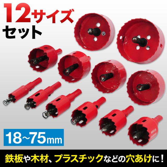 ホールソー セット ホルソー バイメタルホールソー バイメタル 18 20 24 28 30 35 38 45 50 55 65 75 12本 12本セット ホールソーセット ホルソーセット 超硬ホールソー 超硬ホルソー 鉄板