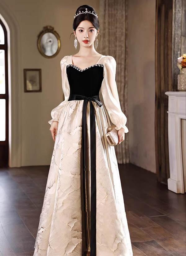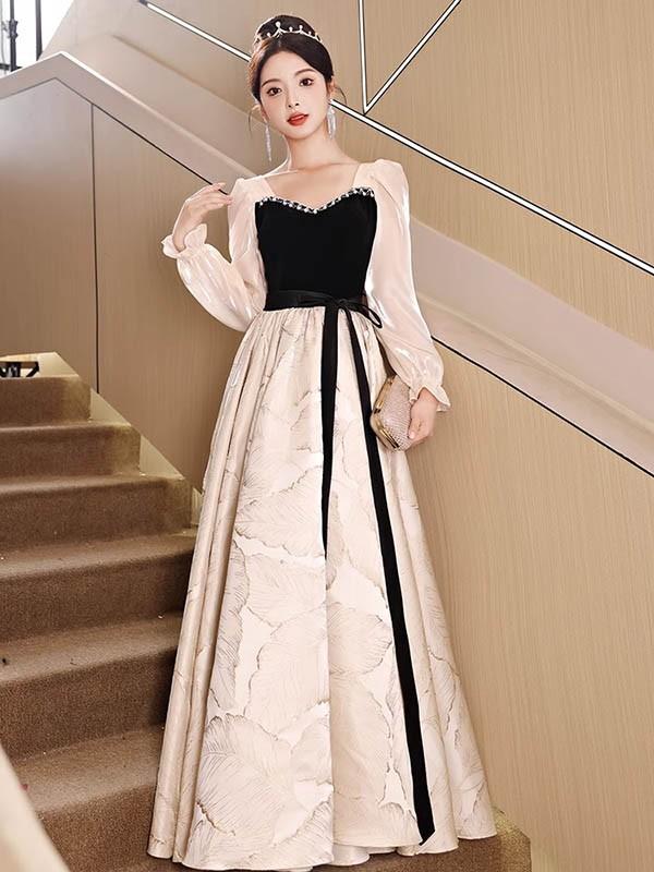 ドレス 大人 ピアノ 発表会 ロングドレス 大きいサイズ 袖付き 長袖 演奏会 結婚式 母親 演奏会用ドレス ロング 黒 披露宴 レディース 演奏会ドレス ピアノ発表会 韓国 イブニングドレス パーティードレス ワンピース 二次会 花嫁 dg265n1n1zu