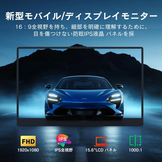 モバイルモニター 15.6インチ フルHD IPS液晶 Type-C接続 HDMI対応 軽量 持ち運び便利 スピーカー内蔵 ゲーム用・ビジネス用兼用 新型 モバイルディスプレイ