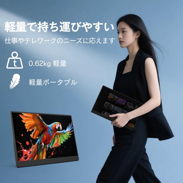 | ・大画面フルHDで作業効率アップ、映像も文字もくっきり ・薄型・軽量で外出先のプレゼンや在宅ワークの拡張に最適 ・ブルーライト軽減で長時間利用でも目の負担を抑制 ・スピーカー内蔵&3.5mm端子で動画・ゲームも快適 |