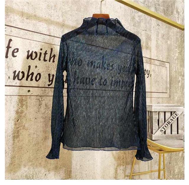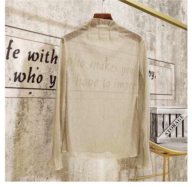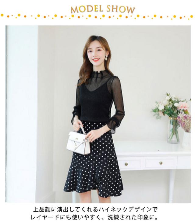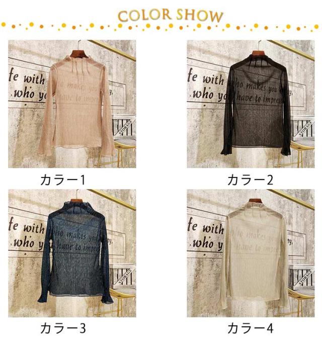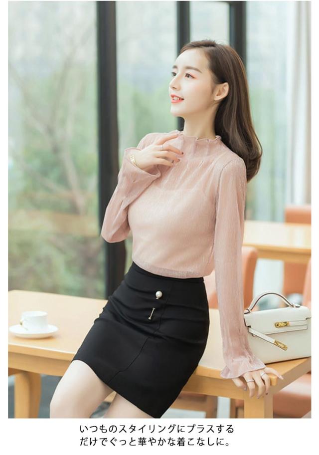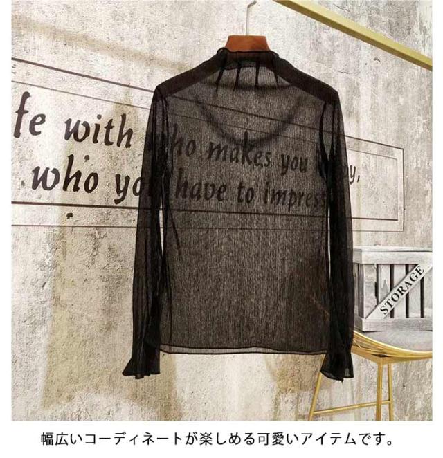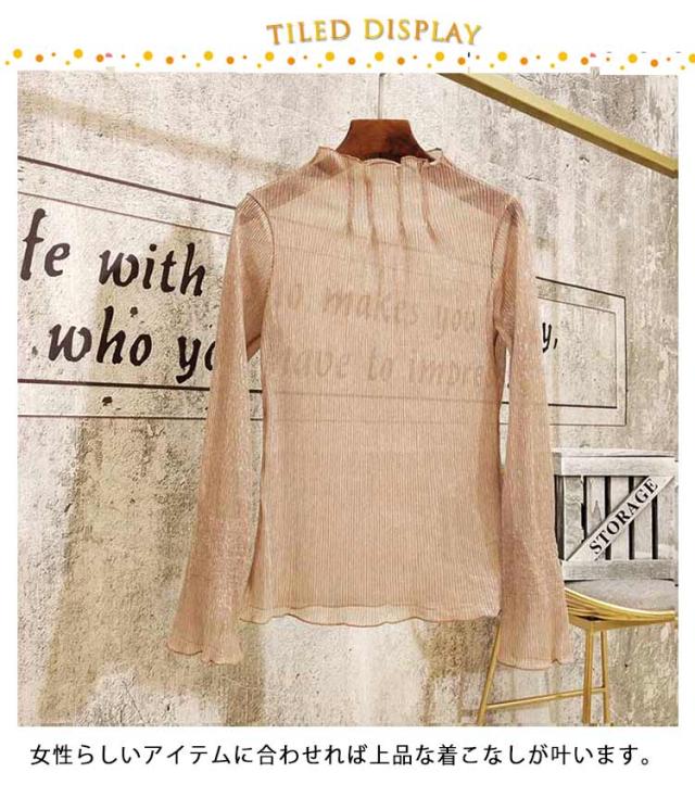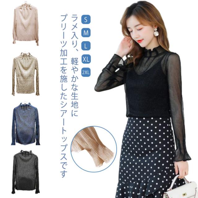 シアートップス インナー ハイネック ラメ シアー 透け ラメ トップス プリーツ 大きいサイズ 長袖 肌着 下着 重ね着 きれいめ レイヤードトップス S M L XL 2XL