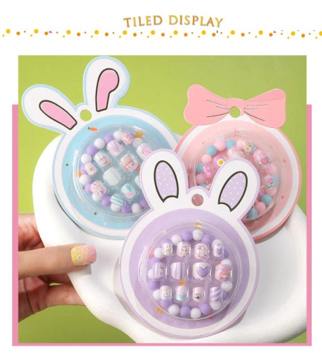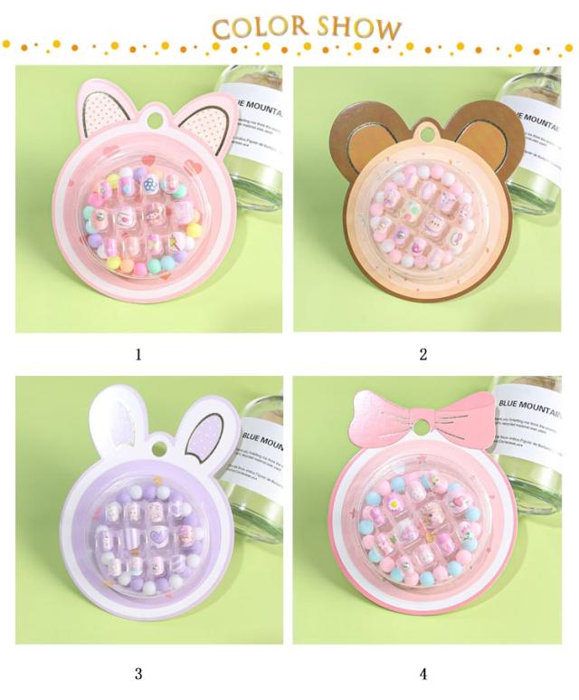 | 簡単装着!デザインネイルとブレスレットのセットが新登場! キッズの爪に最も適したショートサイズで、チップも柔らかく薄い素材なので、装着した際に違和感がありません。 イージーワンタッチタイプのグルーは自爪を傷めず汚れが残りません。 ビーズブレスレットは伸縮性のゴムを用いたシンプルなデザインで、着脱が簡単です。 様々なスタイルをミックスして使用しますて、ネイルアートを楽しめます。 子供のための最もかわいいデザイン、良いギフトの選択。 | |