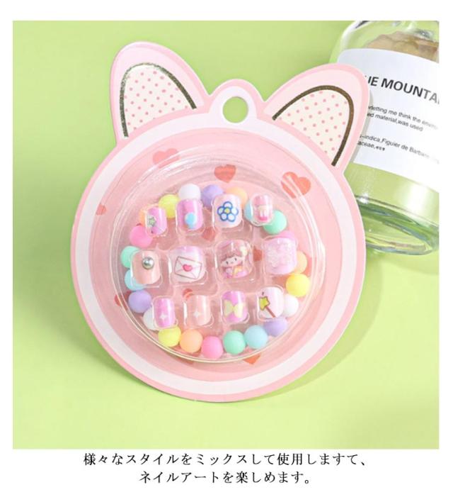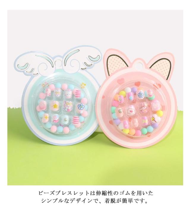 キッズ ネイルチップ キッズ ネイル 子ども用 ネイルとビーズブレスレットセット 女の子 ラグジュアリーネイル 簡単ネイル ネイルステッカー ワンタッチ ネイルアート ネイルパーツ こどもネイル ネイルチップ 子供 こども