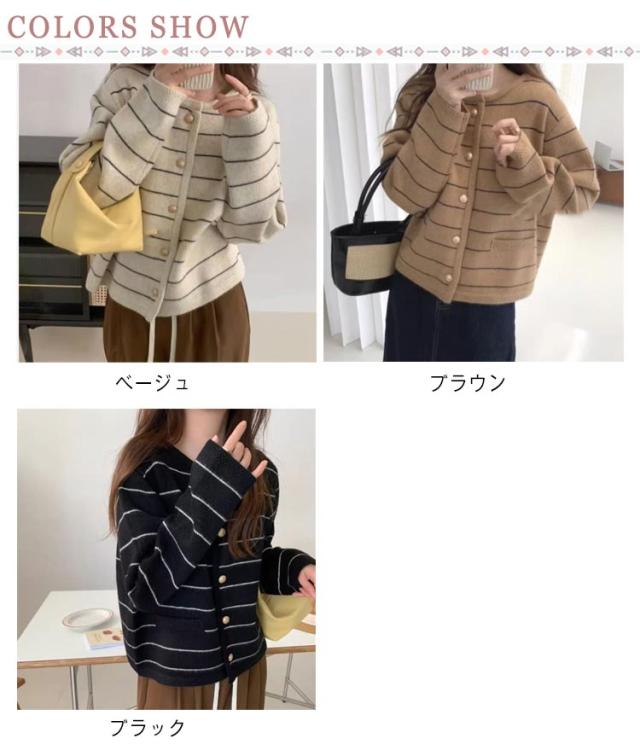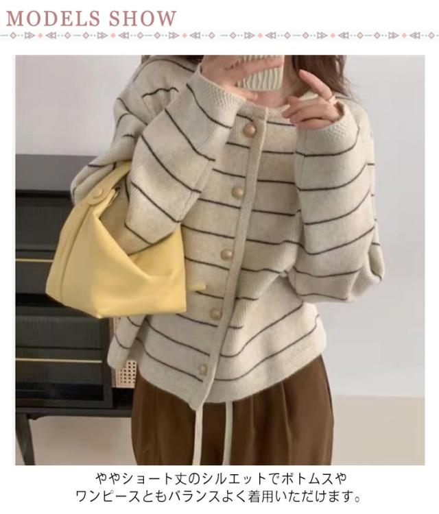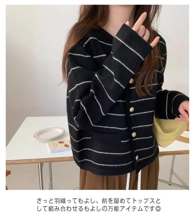 羽織り ボーダー ニット ショート丈 レディース ボタン カーディガン カーディガン トップス アウター 前開き ゆったり 韓国風 おしゃれ レトロ 上品 オフィス 通勤 お出かけ 秋 春