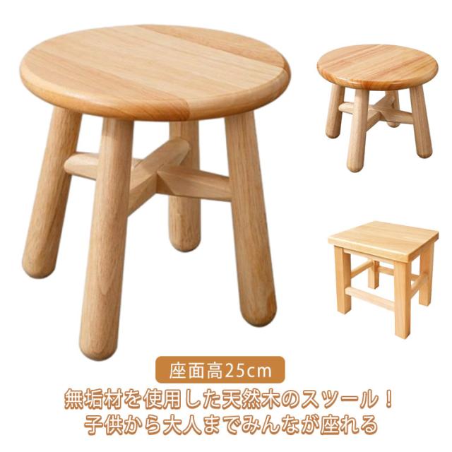 おしゃれ 天然木 木製 円形 キッズ ロースツール 四角 丸 木製 座面高25cm ウッドスツール 無垢材 スツール 子供 椅子 幼児 ミニスツール キッズ イス 小さい 低い 椅子 かわいい 木 玄関 腰掛け コンパクト ナチュラル