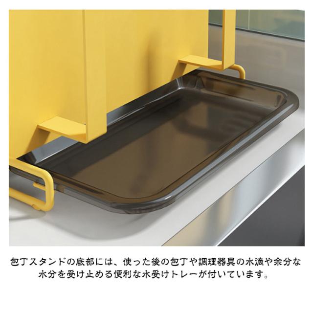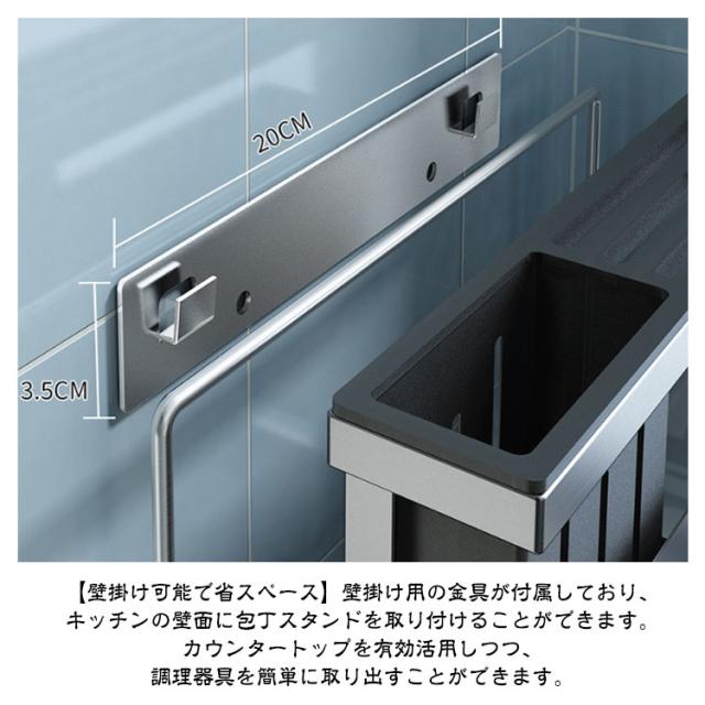| ごちゃごちゃしがちなキッチン周りを綺麗に整頓!多機能包丁スタンド。 【包丁まな板収納スタンド】多機能デザインでさまざまな調理器具を一か所に収納できる多機能ラック。包丁だけでなく、まな板やお鍋の蓋、箸やカトラリーなど、キッチンでよく使うアイテムをスッキリと収納できます。 【厚めのまな板も収納可能】まな板スタンド部は奥行4.8cmあり、薄いものから厚めのものまで様々なまな板が収納可能です。 【便利な水受けトレーで水滴を受け止める】包丁スタンドの底部には、使った後の包丁や調理器具の水滴や余分な水分を受け止める便利な水受けトレーが付いています。 【壁掛け可能で省スペース】壁掛け用の金具が付属しており、キッチンの壁面に包丁スタンドを取り付けることができます。 カウンタートップを有効活用しつつ、調理器具を簡単に取り出すことができます。 【丈夫で錆びにくいステンレス素材】食品グレードのステンレス鋼を使用しており、耐久性があり、食品との接触に安心な素材です。 | |