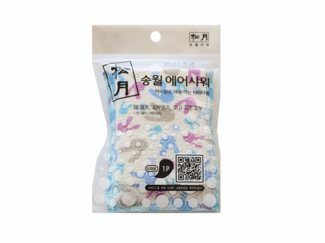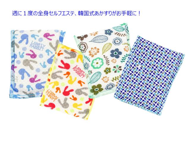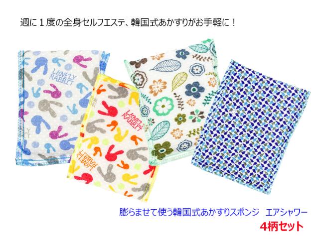 韓国式あかすり セルフエステ やわらかめ生地 スポンジ 「膨らませて使う韓国式あかすりスポンジ エアシャワー 4柄セット」
