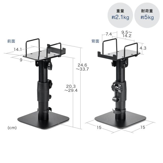 スピーカースタンド 小型 卓上 据え置き 高さ25〜34.5cm 角度調整可能 天板13.5×9cm 耐荷重5kg[100-SPSTN04]