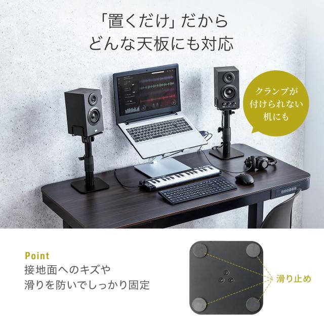 ●スピーカーの高さ、角度を変える事できるスピーカースタンドです。●スピーカーの高さを変えることで音を耳に届きやすくし、モニタリング環境を改善します。また、スペースを広く使うことができます
