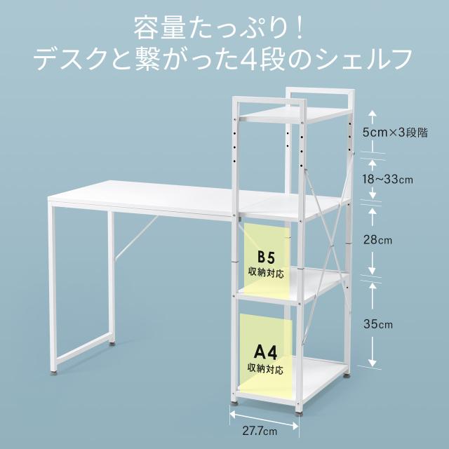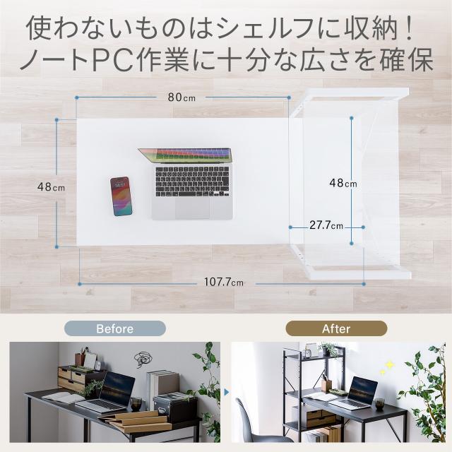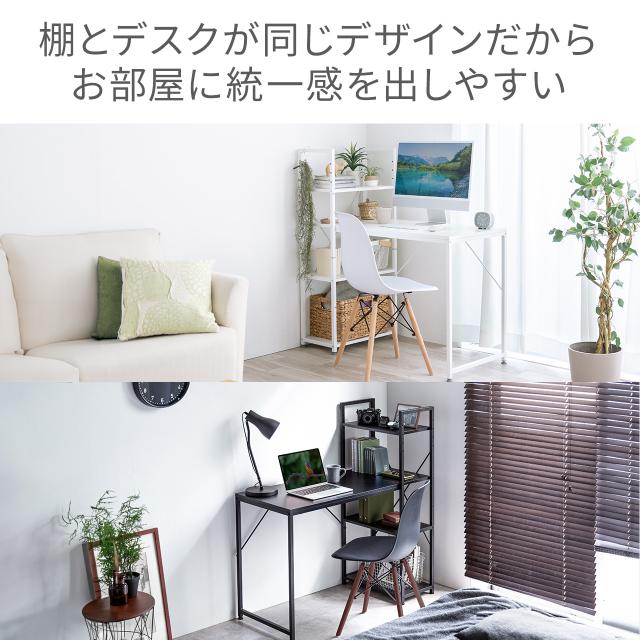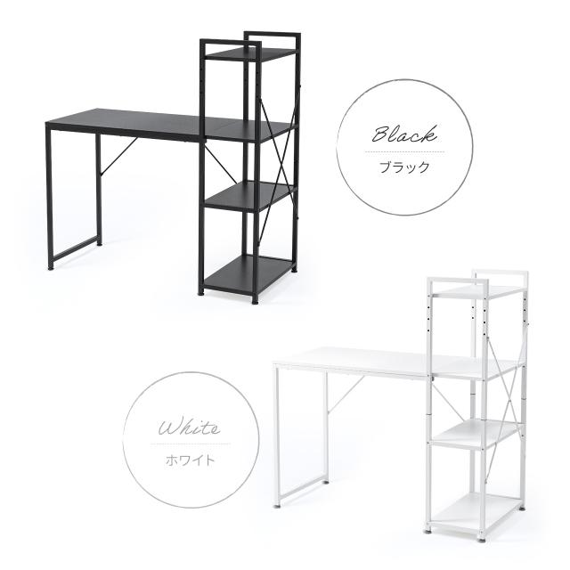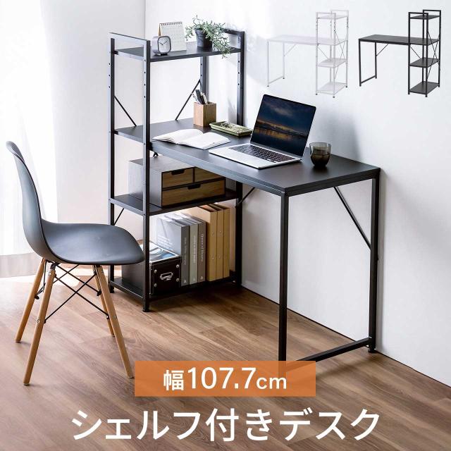棚付きデスク シェルフデスク パソコンデスク 収納ラック 幅107cm 奥行52cm 棚付き ブラック ホワイト[100-DESKH079]