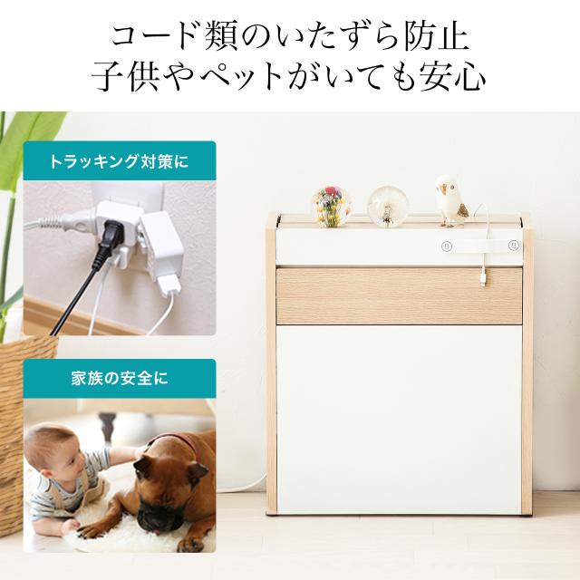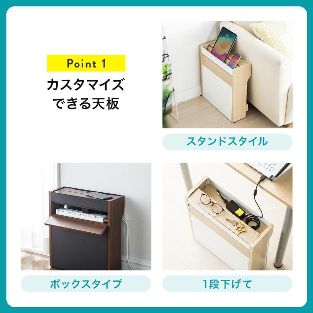 ●電源タップを収納して、ごちゃごちゃしたケーブルをキレイにし見た目もスッキリさせることができます。●天板を水平に設置しボックススタイルにして、タップやケーブル、ACアダプタなどを収納することができます。