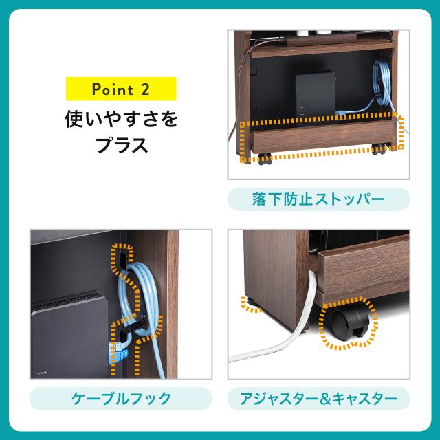●後部にキャスターが付いているので、メンテナンスや、お掃除の時に簡単に引き出すことができて便利です。