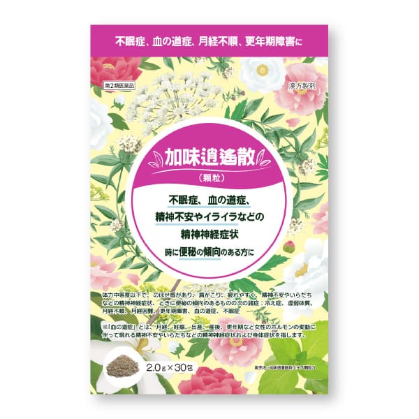 本剤は、中国の宋時代(約1000年前)の古典「太平恵民和剤局方」に収載されている加味逍遙散に準拠して製造されたエキス顆粒剤です。