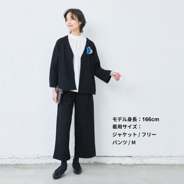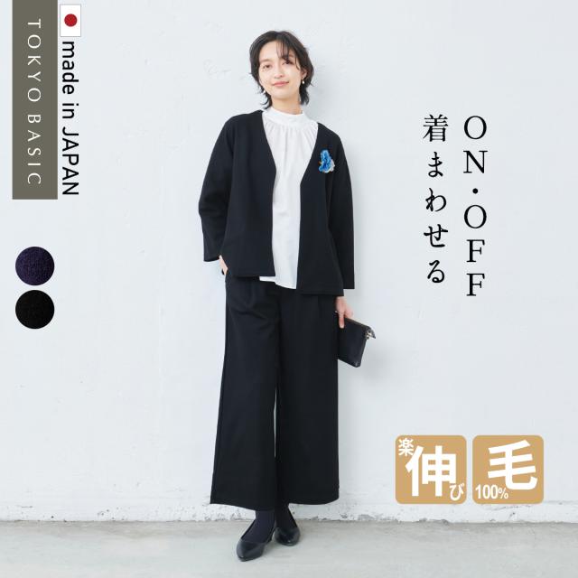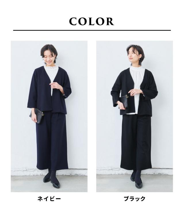 圧縮ウール100% こなれ Vネック ジャケット + ワイドパンツ 2点セット 日本製 / 卒業式 セットアップ 40代 入学式 ママスーツ 30代 50代 フォーマル スーツ 体型カバー パンツスーツ 暖かい