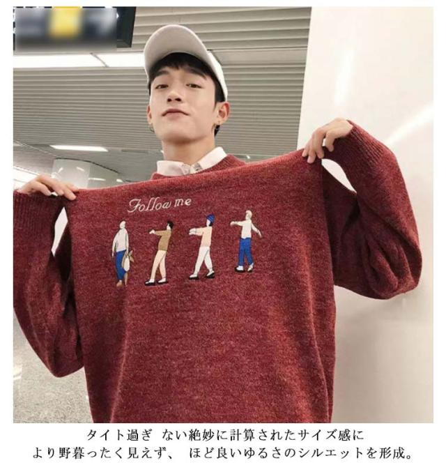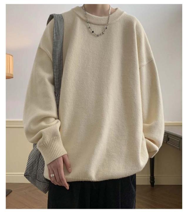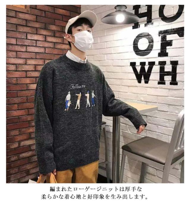 オーバーサイズ オーバーサイズ 韓国ファッション ビッグシルエット ゆったり ニット ニットセーター セーター ビッグニット ニット セーター クルーネック 編み 厚手 秋 秋服 冬 冬服 春 洗える メンズファッション