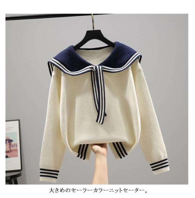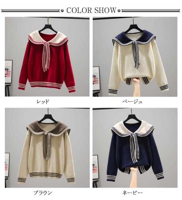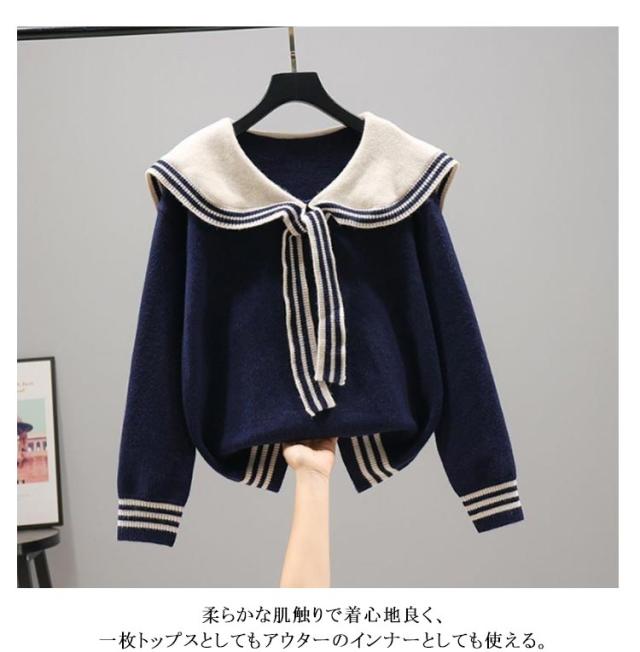 ニット セーター セーラーカラーニット 可愛い ニットトップス 襟付き レディース プルオーバー セーラー服 通学 女の子 中学生 秋