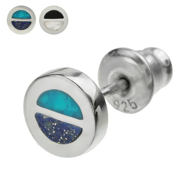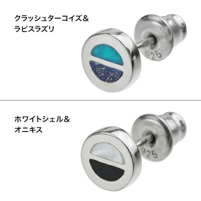 セミサークル ストーン スタッド ピアス メンズ フープピアス シルバー925 アクセサリー オニキス ターコイズ ラピスラズリ シェル ラウンド 円型 シルバーピアス 片耳用 (1個売り)