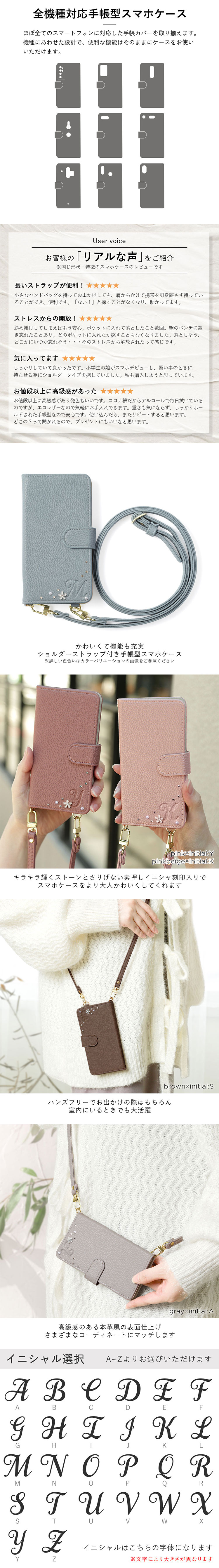 ショルダータイプの手帳型ケースが全5色×イニシャル