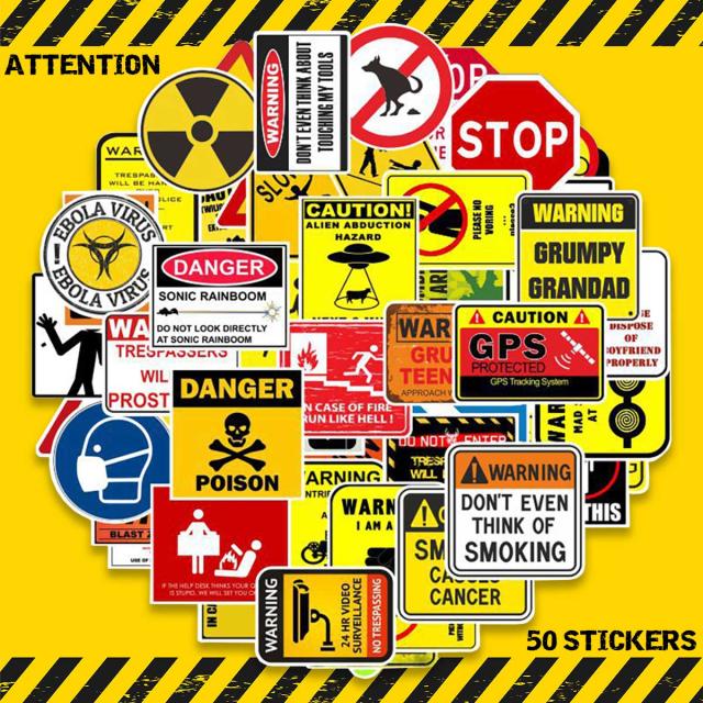 アテンション ステッカー 50枚セット PVC 防水 シール スーツケース MacBook 注意 警告 キケン