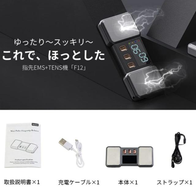 ☆指先EMS+TENS機「F12」は、電気パルスで指関節に多様な刺激を与え、身体をほっとさせるスティミュレーターです。