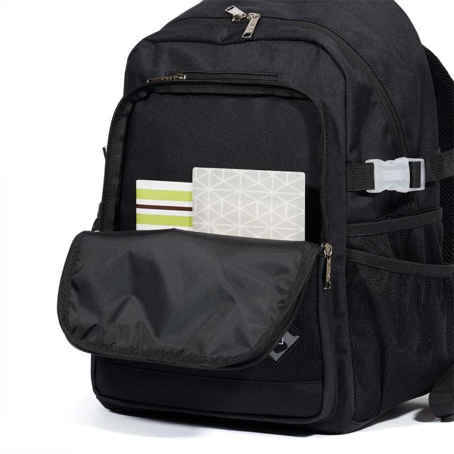 前面にファスナーポケット、側面にメッシュポケット、メインルームにはPCポケットを搭載。バッグの中でバラバラになりがちな荷物を簡単に整理できます。