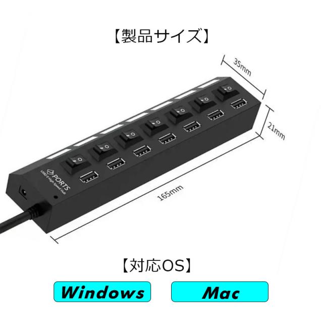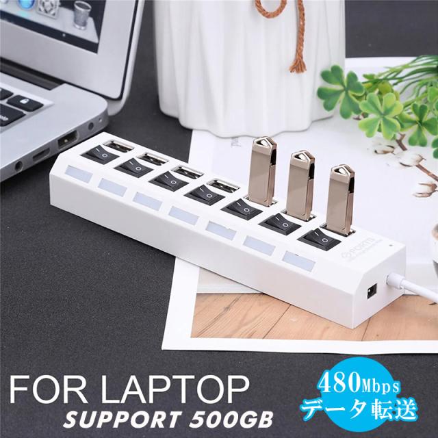 | USB2.0/7ポート USBハブ 500mA 個別スイッチ付き USB 延長コード 電源タップ OAタップ ブラック ホワイト |