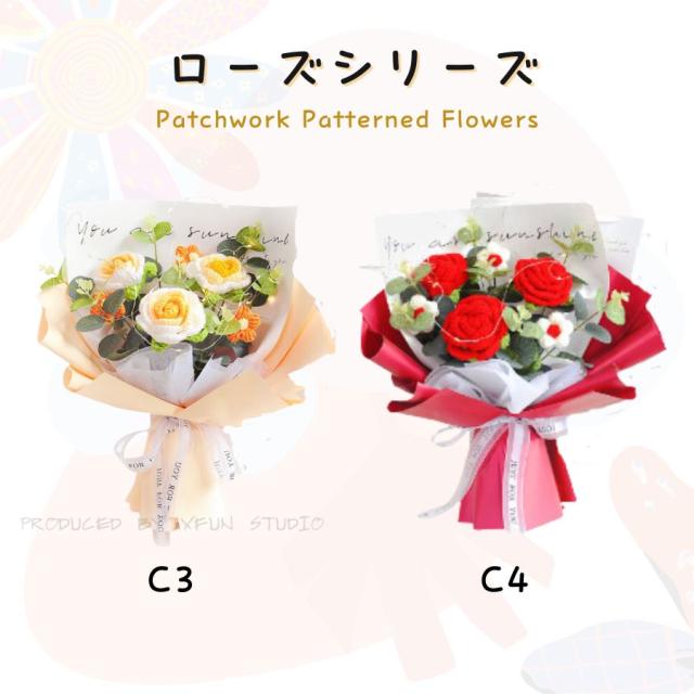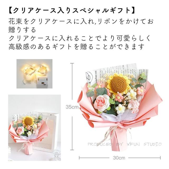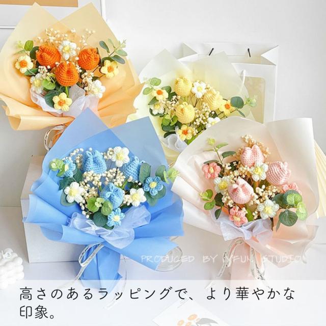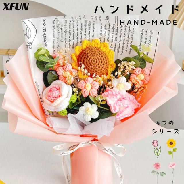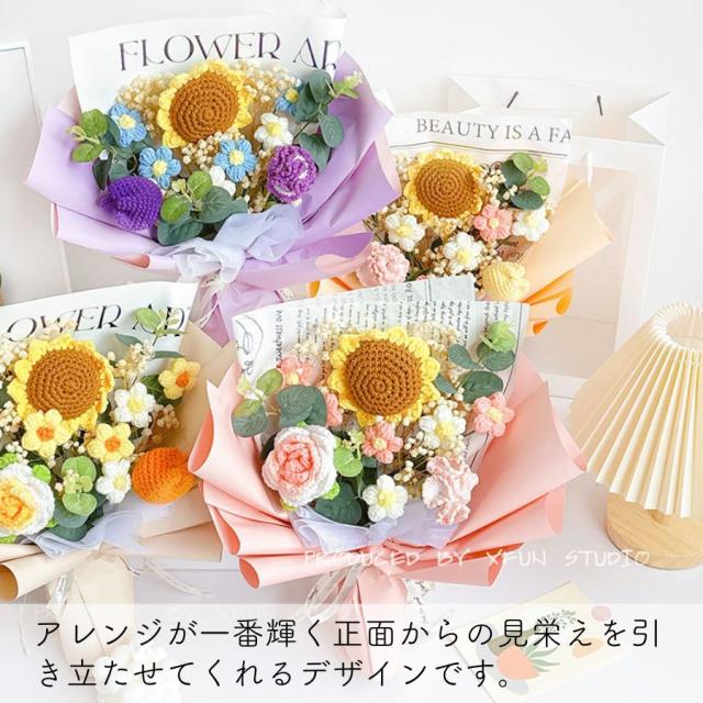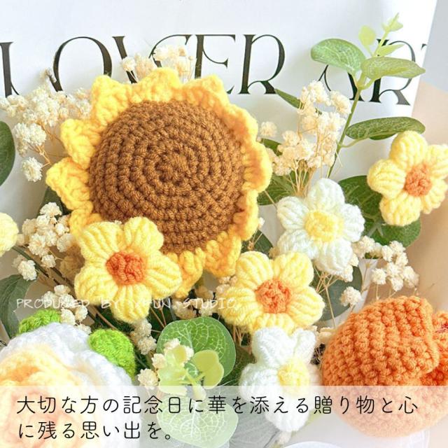造花 ニット造花 花束 手作り 毛系 かぎ針編み 造花 花束 編み物 手編み 一輪 ローズ ひまわり チューリップ カーネーション ハンドメイド フラワー かわいい 人気 綺麗 キレイ 母の日 プレゼント