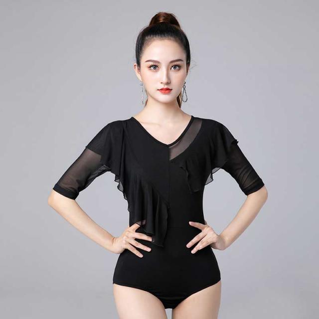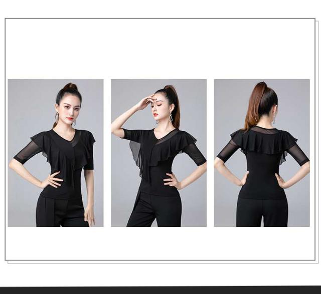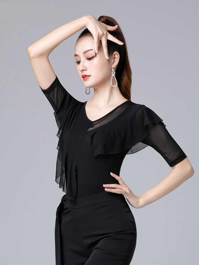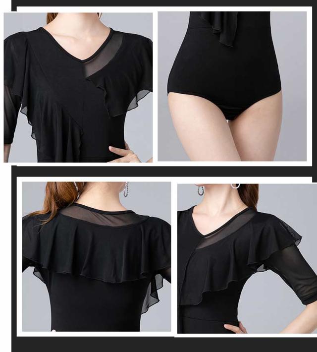 社交ダンス トップス 社交ダンス衣装 トップス レオタード式 大きいサイズ ダンス用シャツ 透け感 五分袖 ダンスTシャツ 社交ダンス ラテンダンス ダンスウェア 練習着 カラオケ衣装 レッスンウェア 黒 dm631c0zu