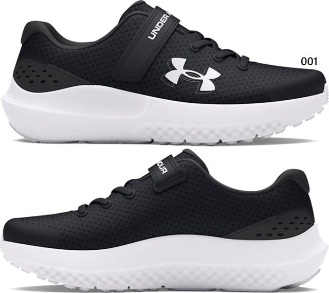 D幅 アンダーアーマー ジュニア キッズ UAサージ4 AC UA BPS Surge 4 AC スニーカー シューズ 運動靴 ランニング マラソン ベルクロ マジックテープ ブラック 黒 送料無料 UNDER ARMOUR 3027104