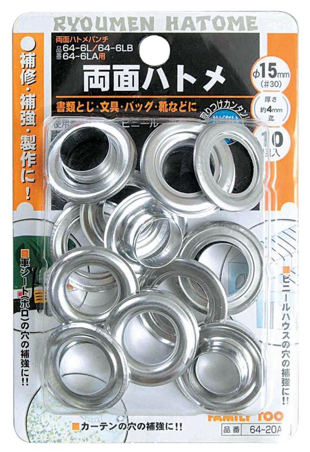 イチネンアクセス FAMILY TOOL(ファミリーツール) ハトメ 両面ハトメ玉 #30/15mm 64-20A 60139 アルミ製 10組