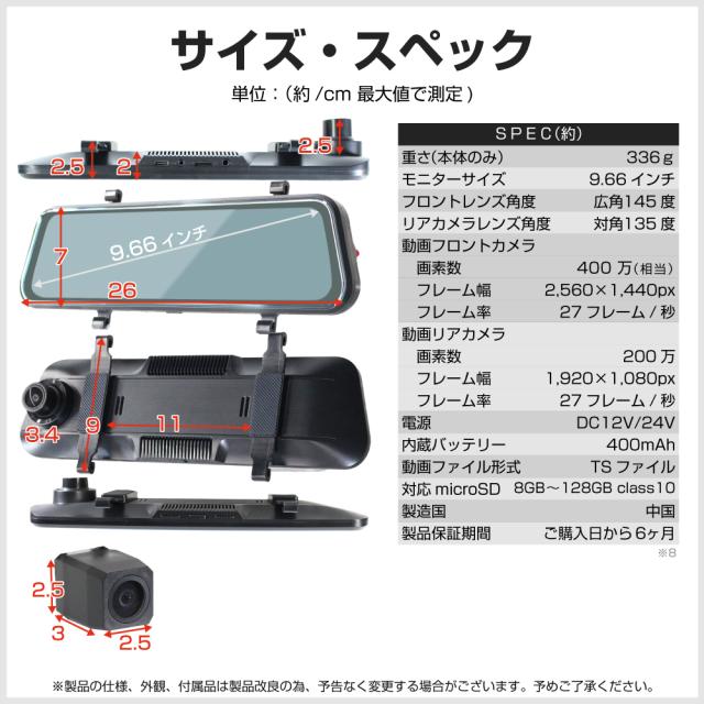 ドライブレコーダーサイズ(約):縦26×横7×奥行2cm
