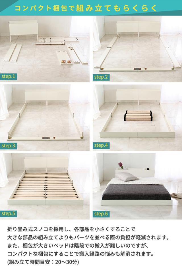 寝具 おしゃれ 宮付きフロアベッド Lonnie ロニー グレーマットレスセット S すのこベッド ヘッドボード付き ずれにくい 組立式 コンセント付き USBポート付き