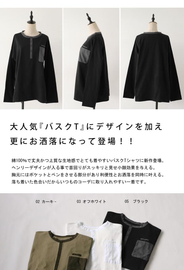 「絶対使える、春の即戦力」1,000円OFF対象! バスクヘンリーロンt ロンT レディース トップス 長袖・再入荷 (500)メール便可