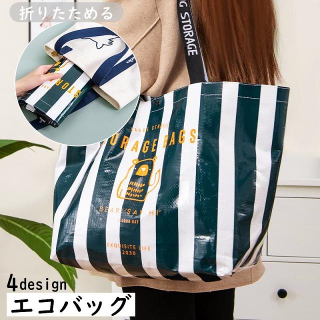 エコバッグ ショッピングバッグ マルシェバッグ トートバッグ ビニール 買い物袋 大容量 肩掛け 2way 折りたたみ 水洗い