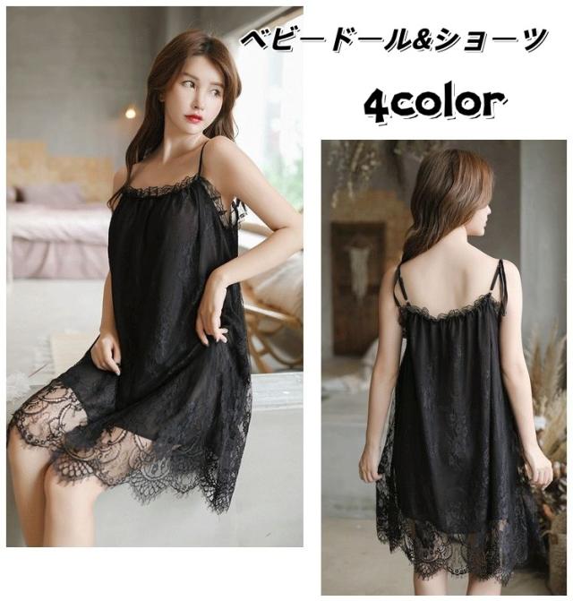 ベビードール レディース ショーツ付きセクシーランジェリー 勝負下着 スリップ キャミソール 花柄レース フリル 透け感 可愛い
