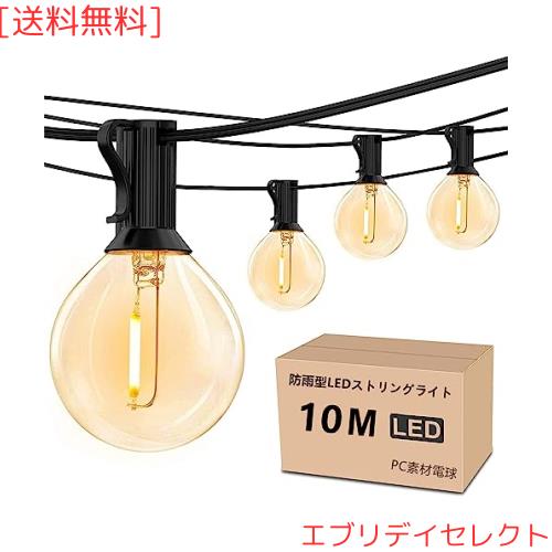 防雨型LEDストリングライト 10M 15個LED電球付き E12口金 2700K電球色 PC素材 破損しにくい 連結可能 LEDイルミネーションライト屋内/屋