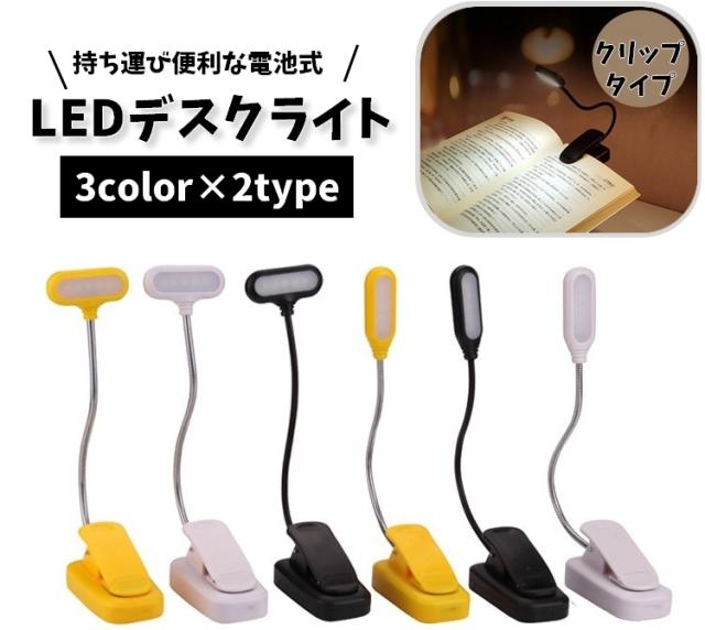 デスクライト LEDライト クリップ式 電気スタンド スタンドランプ 卓上ランプ LED照明 360度回転可能 電池式 コードレ