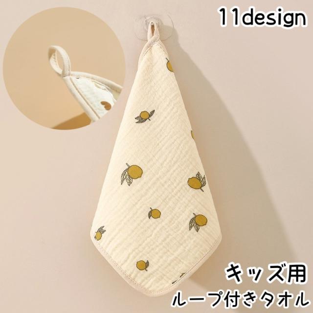 ループ付きタオル ハンドタオル ミニタオル ハンカチ 子供 キッズ お手拭き 紐 吊り下げ スクエア 正方形 フラワー クマ ハ