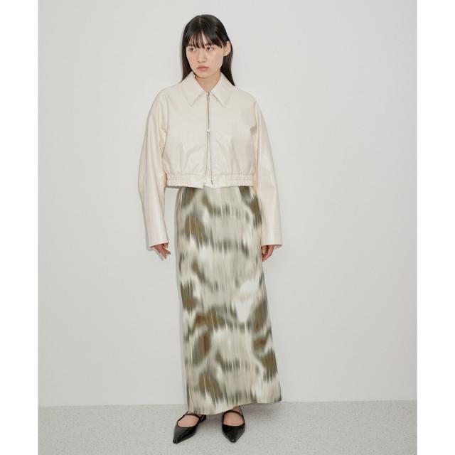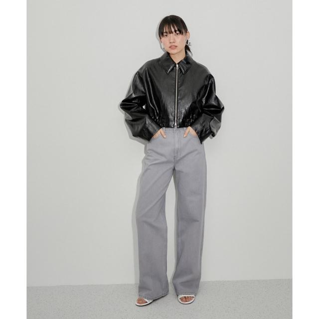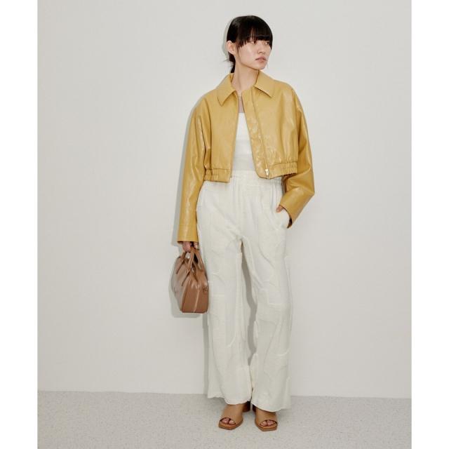 【ミニマルなデザインとシルエットにこだわった、女性らしいスタイリングにも合わせやすいクリーンな印象のフェイクレザーブルゾン】