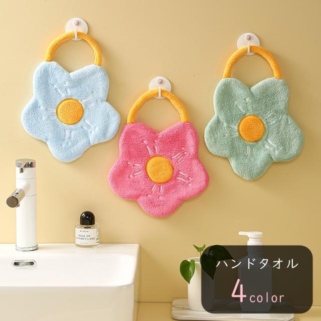 ハンドタオル 花型 フラワー 持ち手付き ループ付き ツートンカラー バイカラー グリーン ブルー かわいい キュート ガーリー