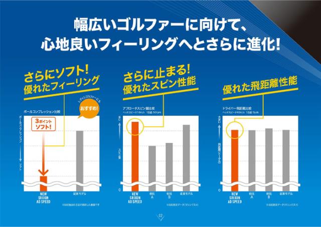 大きな飛び、優れたスピン性能、ソフトな打感、ADSPEED