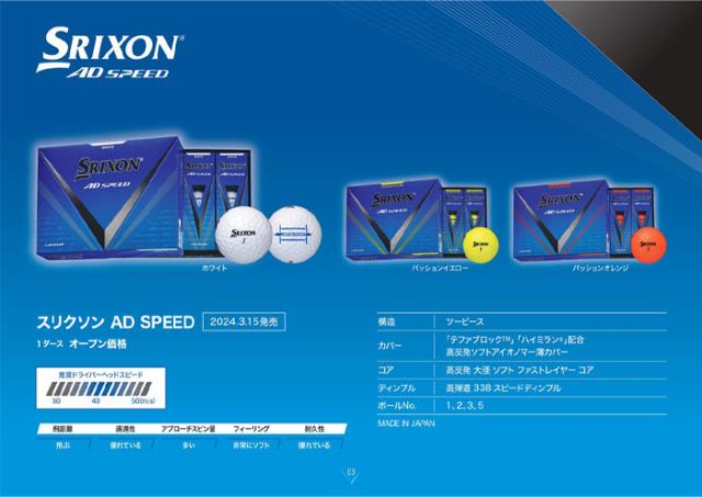 ダンロップ スリクソン ゴルフボール AD SPEED 1ダース ●2024年モデル● DUNLOP SRIXON