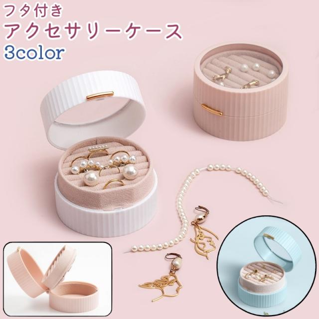 アクセサリーケース ジュエリーボックス 丸型 円形 ラウンド フタ付き フック付き フリース シンプル 指輪 ブレスレット ピア